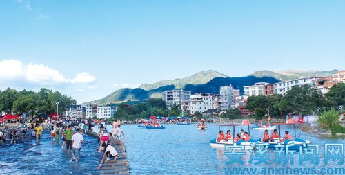虎邱镇长潭公园已成为群众旅游消暑热点,来自县城及虎邱周边乡镇的游客,携幼扶老前往赏荷花、摘葡萄、划游船、淌水据不完全统计,该景点日均接待游客上千人,直接带动周边餐饮、零售等行业发展。
