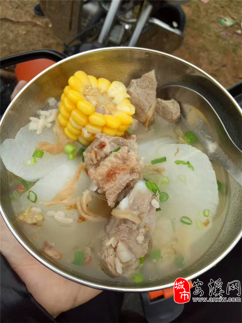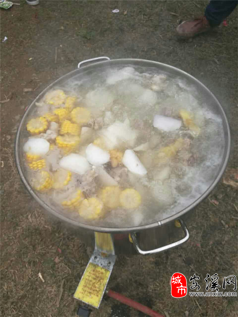 午餐:煮大锅咸饭+排骨汤